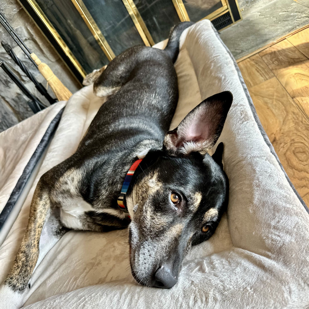 Highly intelligent and sometimes mischievous, Chip thrives with a strong leader to guide him. Sensitive and soulful, he has a touch of FOMO (non‑destructive separation anxiety) that has improved through his live‑in training program. Thanks to that training, Chip has solid recall, knows sit, down, and place, is crate‑trained, and doesn’t resource guard. A limited‑ingredient diet keeps his stomach happy and healthy.