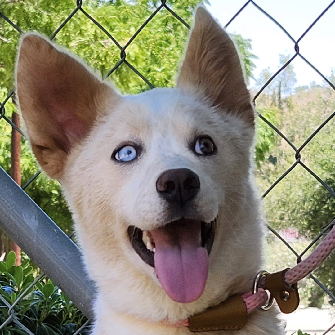 Lena is a 4-month-old female Husky puppy who’s as stunning as she is sweet. With her striking heterochromia (one blue eye, one brown), she’ll catch your eye — and then steal your heart. Friendly, fun, and full of puppy curiosity, Lena is always up for a good time and adores people.