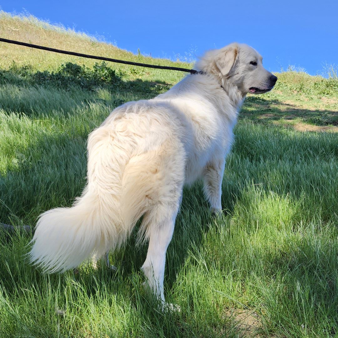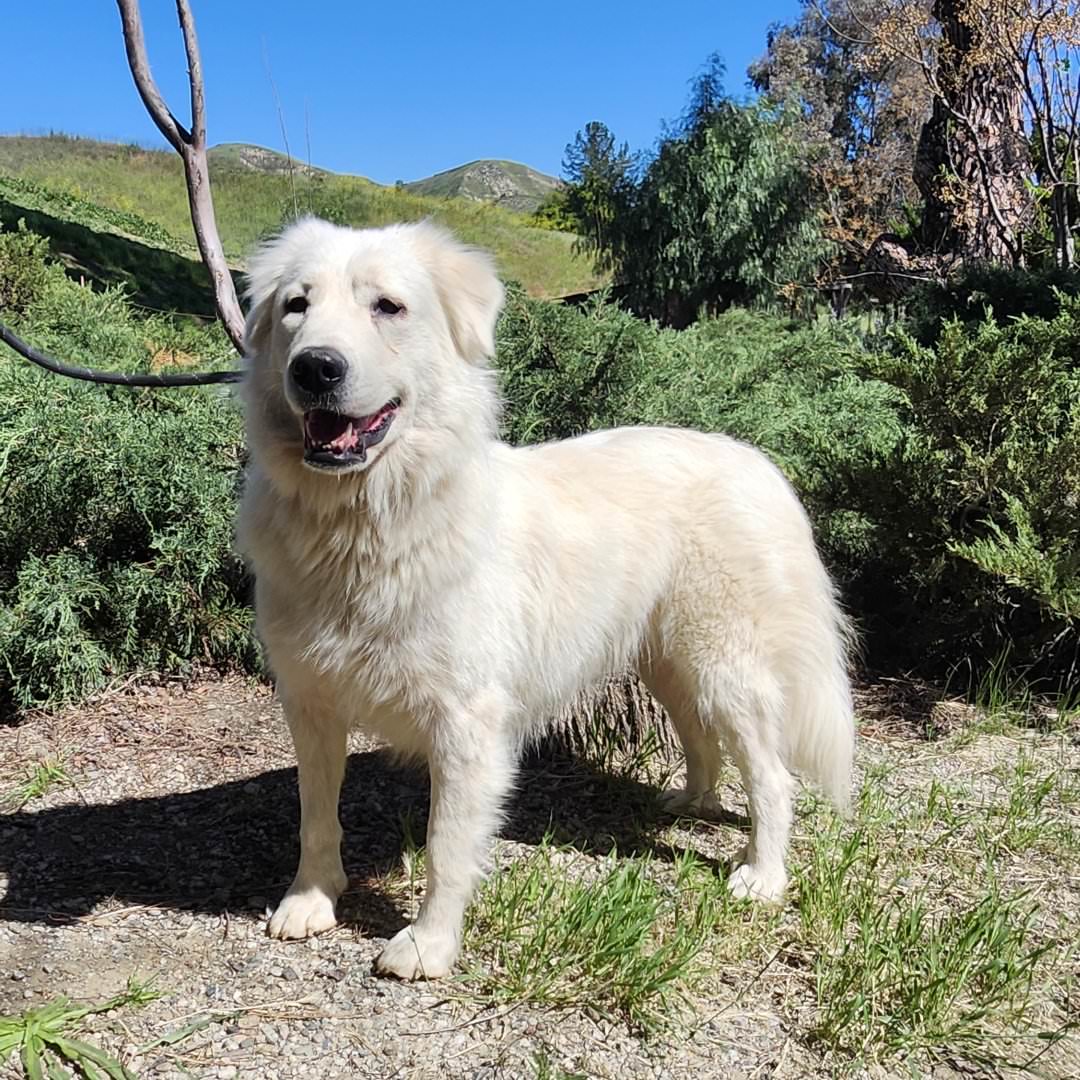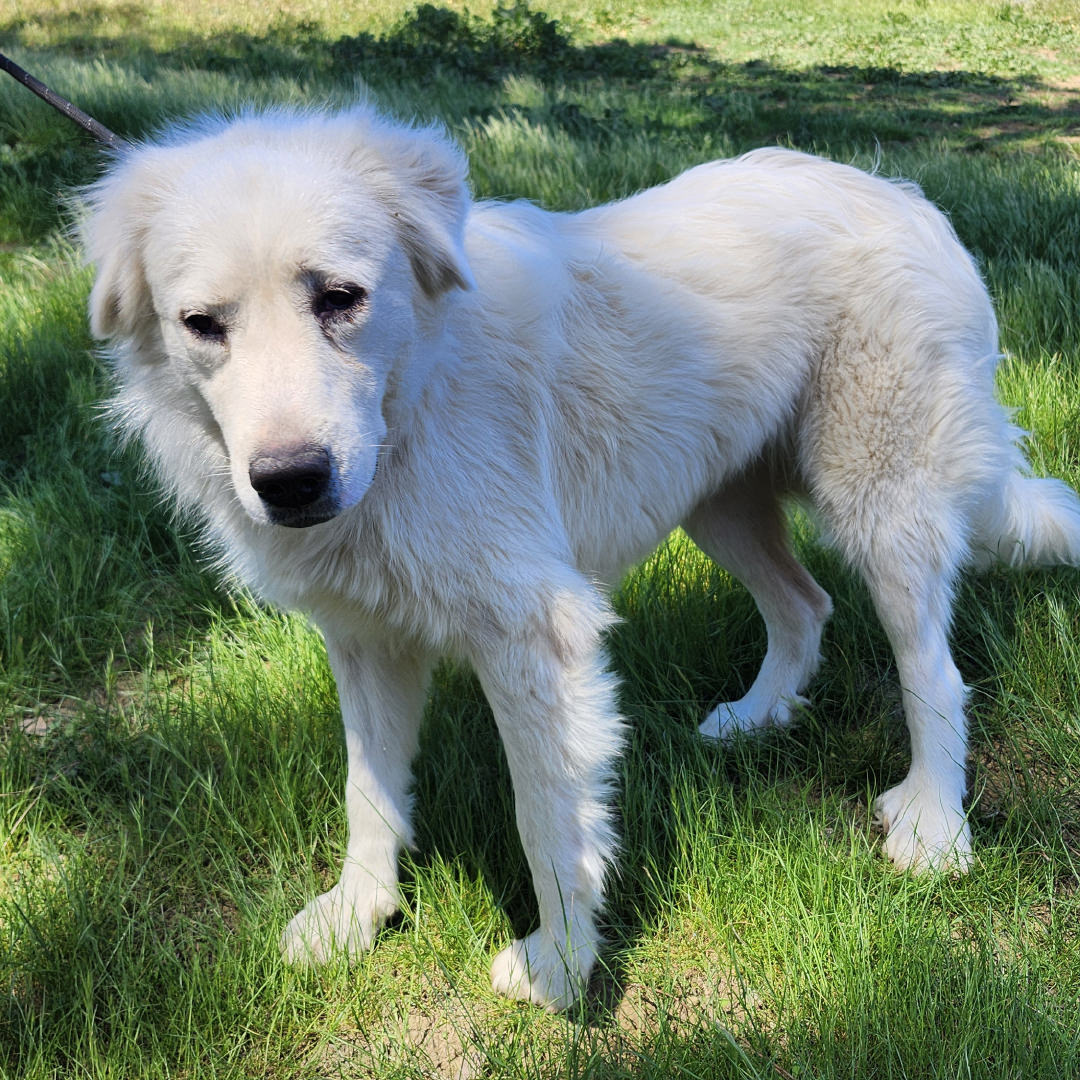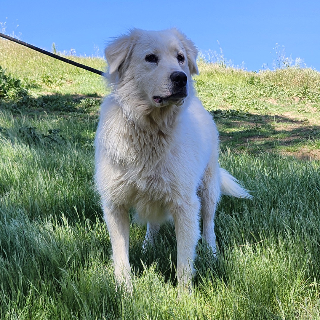 Magnolia is a breathtaking little lady with the classic Great Pyrenees elegance wrapped in a more petite package. At three years old and approximately 90 pounds, she’s a spayed female who turns heads everywhere she goes — her fluffy white coat, soft expression, and regal posture make her truly gorgeous to look at. But it’s her personality that wins people over even faster.