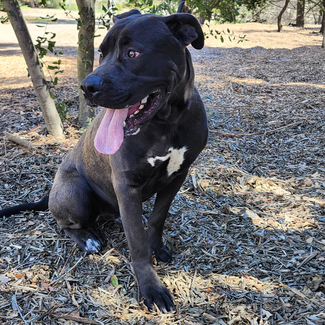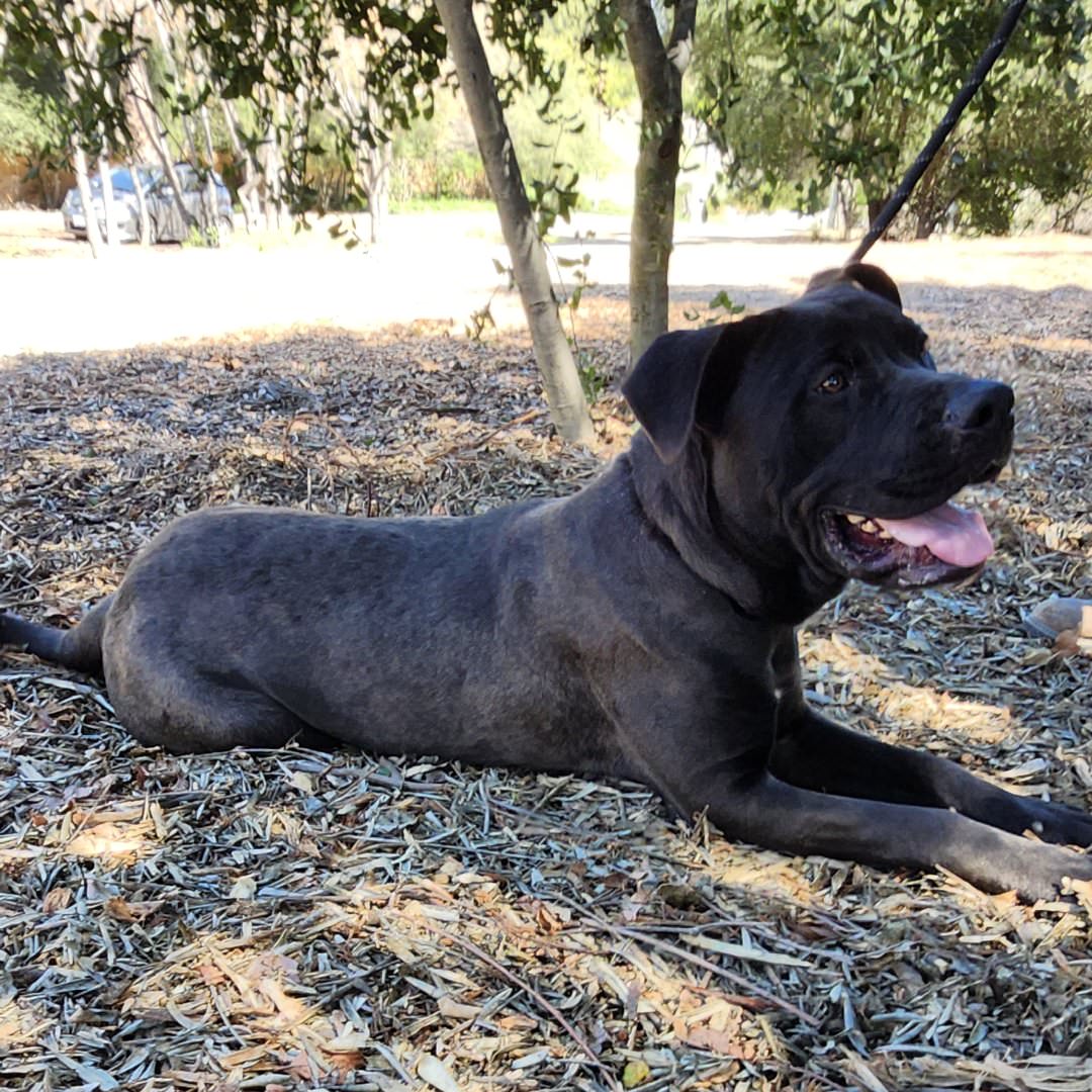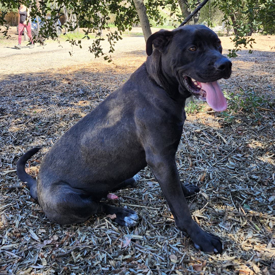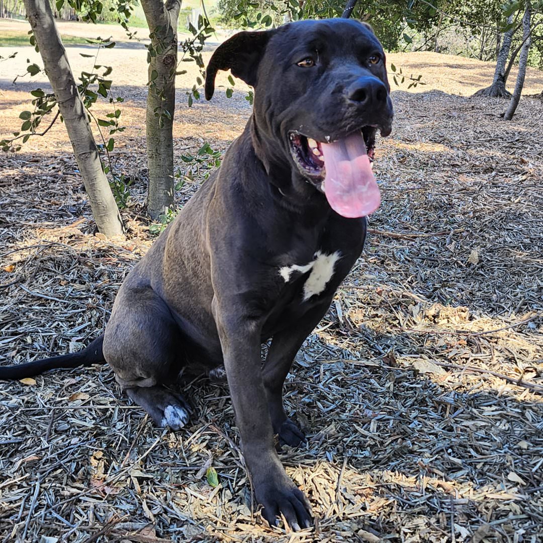 Rex is the kind of dog who turns heads with his size and melts hearts with his sweetness. At just a year old, this Cane Corso mix is a true gentle giant — steady, affectionate, and wonderfully easy to be around. He has a calm, easy-going nature that makes him a joy on walks, and he loves nothing more than leaning in for attention and offering his signature sloppy kisses to anyone lucky enough to meet him.