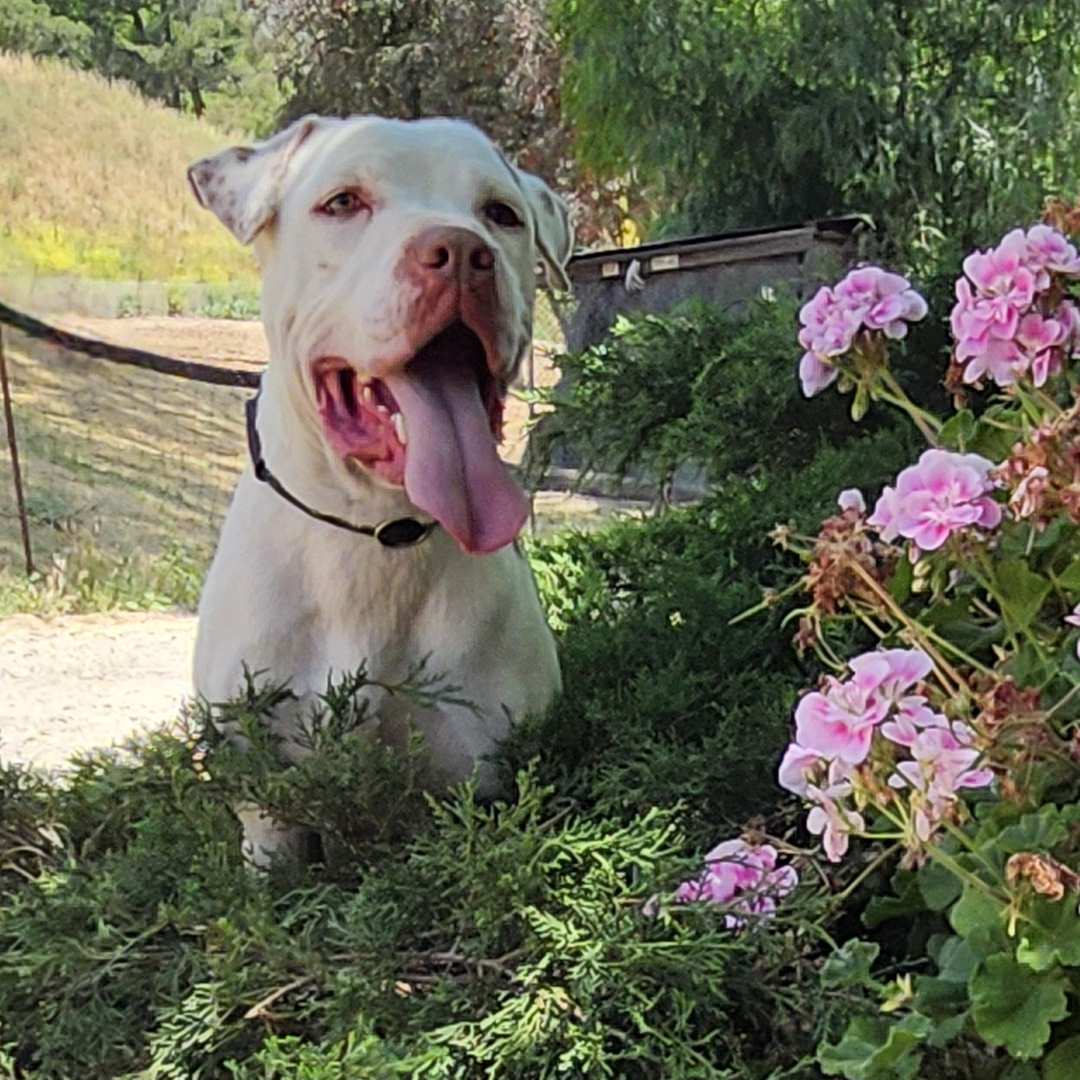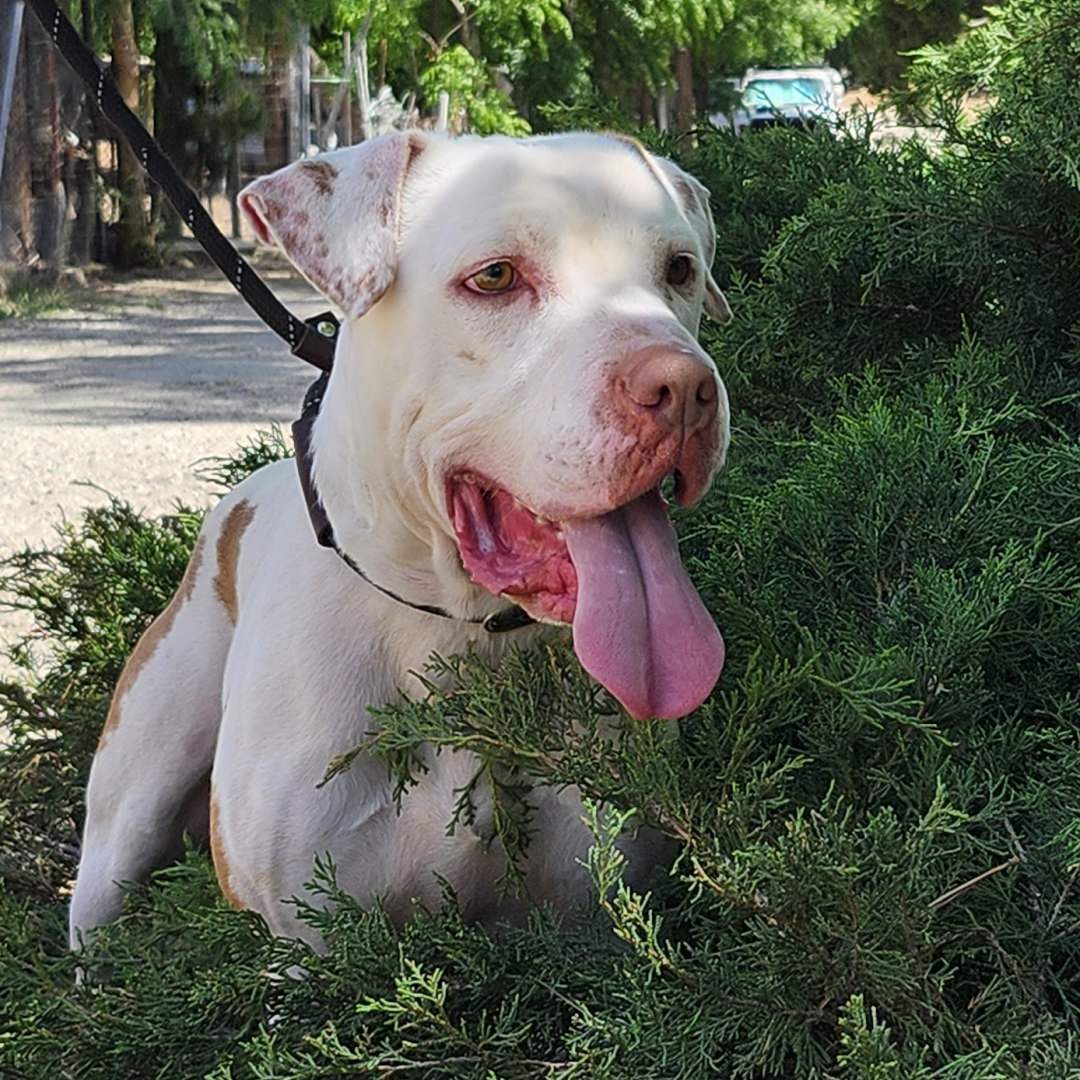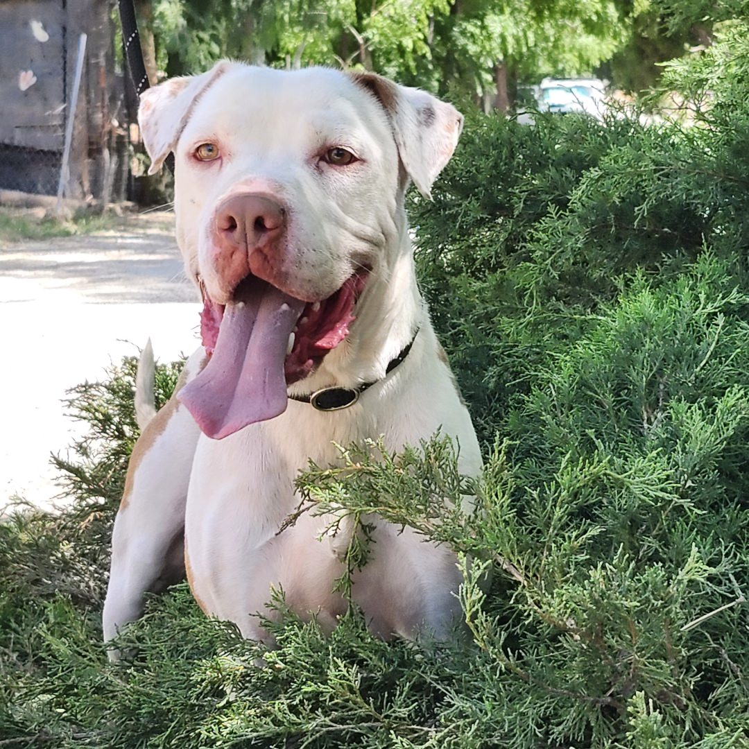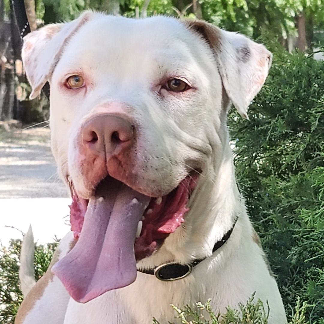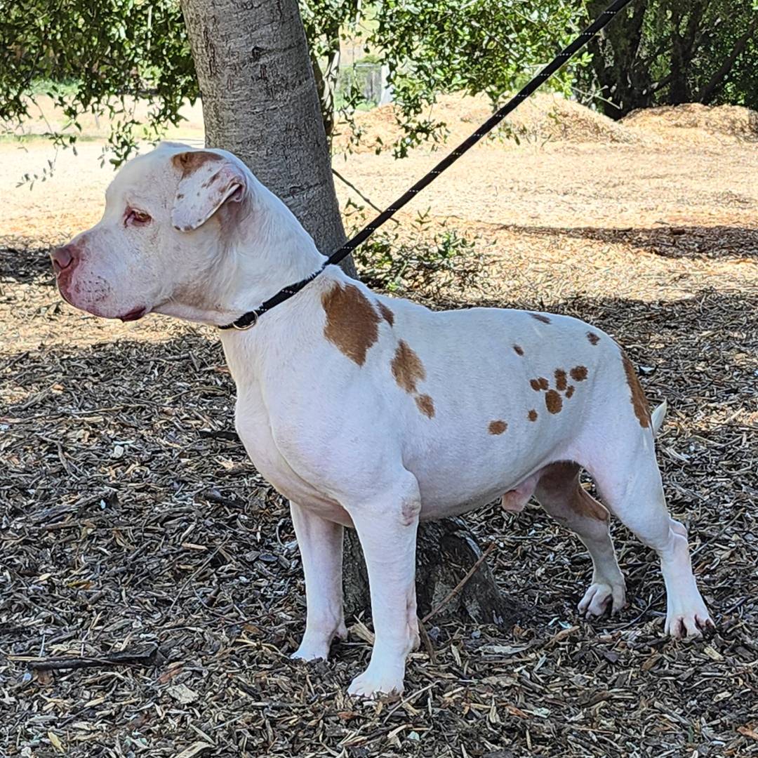 Walter is the kind of dog who makes you smile the moment you meet him. This 3‑year‑old neutered Pit Bull has the most striking, unique coat patterns and a big, joyful grin he wears everywhere he goes. He’s friendly, easygoing, and has that calm, content energy that makes him instantly lovable.