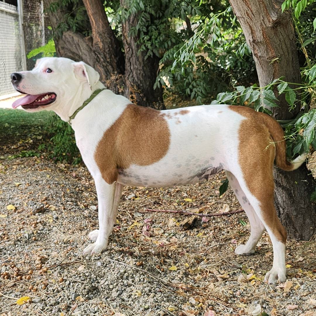 Winnie is a 2-year-old pit mix with a big heart and an even bigger smile. Affectionate and charming, she’s the kind of dog who leans in close just to be near you, melting into your side and asking for belly rubs with those irresistible eyes.